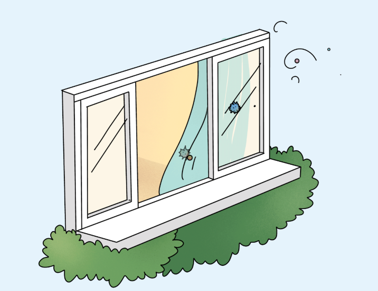 སྨུག་རྡུལ་དང་བྱེ་རྡུལ་འཐིབས་པའི་གནམ་གཤིས་ཡོད་པའི་སྐབས་སུ་ཕྱིའི་མཁའ་དབུགས་ལ་སྦགས་བསླད་ཐེབས་པ་ཅུང་ཚབས་ཆེ་བས་སྒོ་དང་སྒེའུ་ཁུང་གཏན་དགོས།