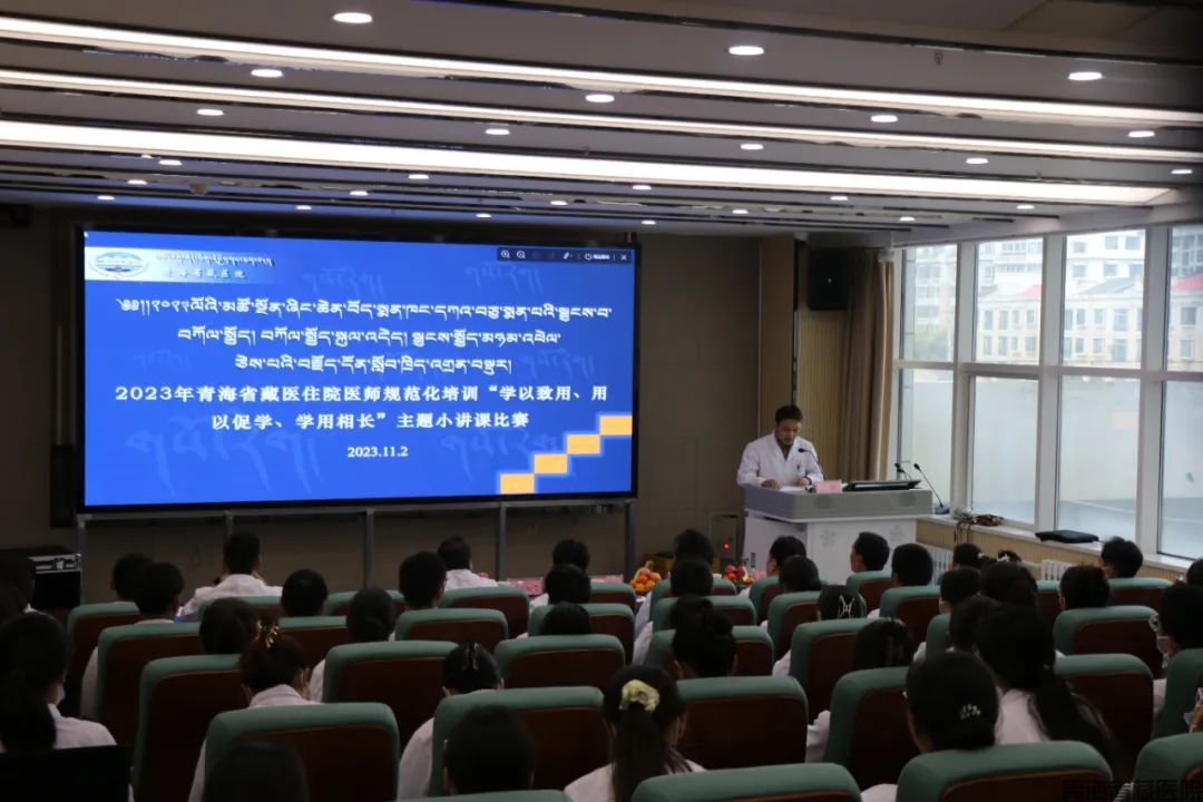 为积极推动我省藏医住院医师规范化培训高质量发展,提升住培医师岗位胜任能力,检验住培医师专业知识掌握情况和带教教师教学能力水平,以学好、用好、讲好为主题思路,让基地的每一名住培医师及带教老师充分体会基地的多样学习文化,11月2日,基地在培训中心三楼阶梯教室举办了2023年青海省藏医住培基地“学以致用、用以促学、学用相长”为主题的师生小讲课比赛,共9名带教老师、15名住培医师参加。