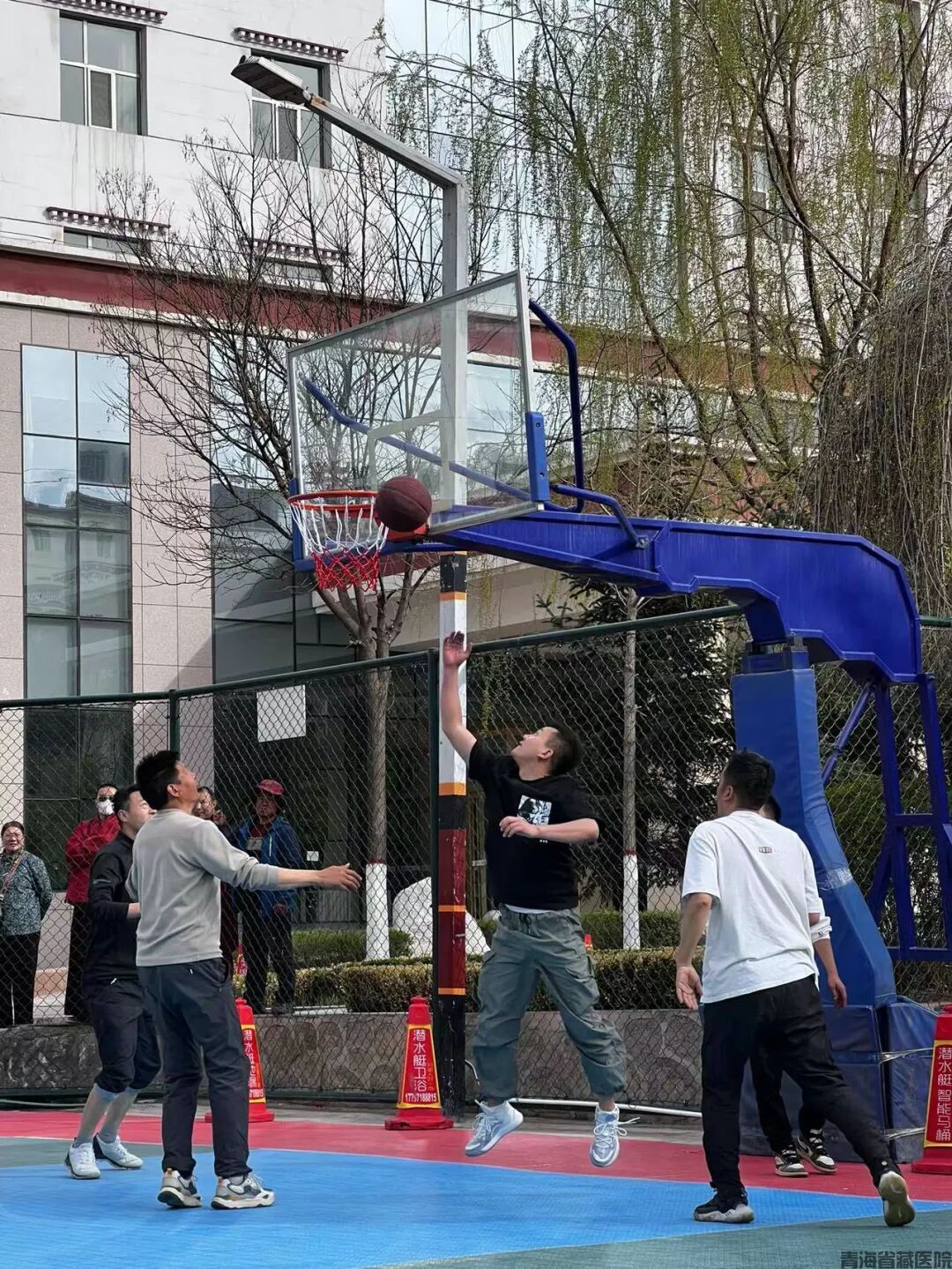 4月29日,团体跳绳,长绳翻飞中,队员步调一致,整齐跳跃展现团队节奏感与默契;团体拔河,哨声一响,党委书记昂青才旦同志主持比赛,参赛队伍紧握长绳、稳扎马步,场边助威声震耳欲聋,将气氛推向顶峰;三人篮球,攻防转换迅捷,传球精准如手术刀,赛场热血沸腾。