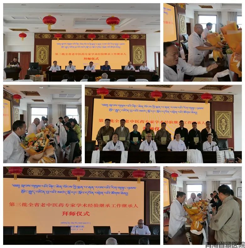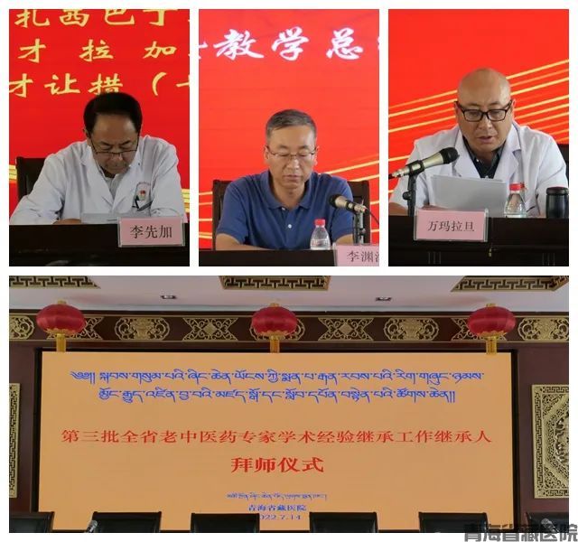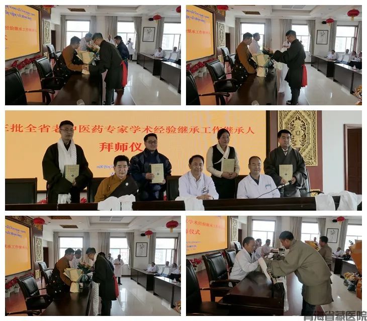 首先,由副院长万玛拉旦宣读《青海省卫生健康委办公室关于确定第三批全省老中藏医药专家学术经验继承工作指导老师及继承人名单的通知》,全国名老中医药专家学术经验传承工作室专家南拉卡、主任医师格桑扎西、李加等8名藏医药专家作为指导老师共收徒16人。